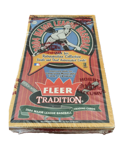 2004 Fleer Tradition is a 500-card set released in a single series in January, 2004. Like previous Fleer Tradition sets, the design of the base set is loosely based on a previous set; in this case 1990 Fleer. The last 100 cards in the base set are short-printed. This set has these topical subsets: Cards 1 through 10 feature World Series highlights, Cards 11-40 feature Team Leaders. In the higher numbers cards 446 through 462 feature young players in an "Standout" subset which cards 462 through 471 feature players who won major awards in 2003. The set concludes with a 30-card three player prospect set which features leading prospects for each of the major league teams.