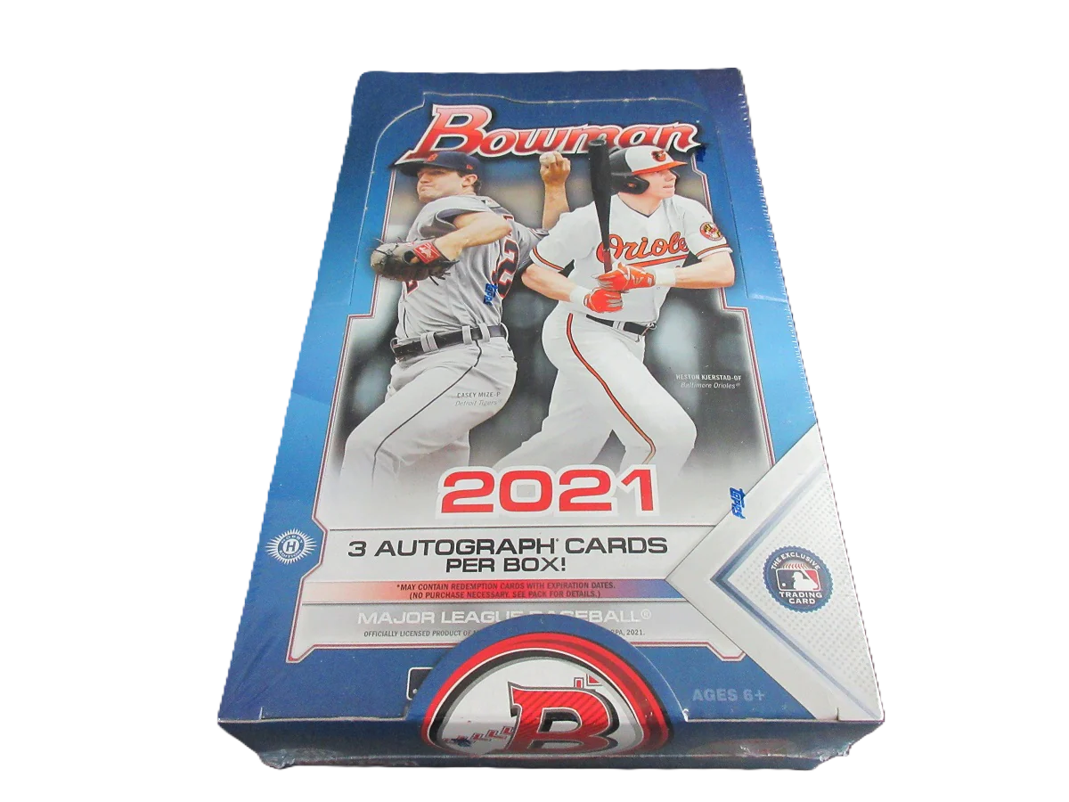 2021 Bowman is a 100-card set, supplemented by a 150-card Prospects set, tentatively scheduled for release April 28th. Each Hobby box will yield one autograph, 19 inserts, and one Atomic Refractor. Hobby Jumbo boxes will contain three autographs.